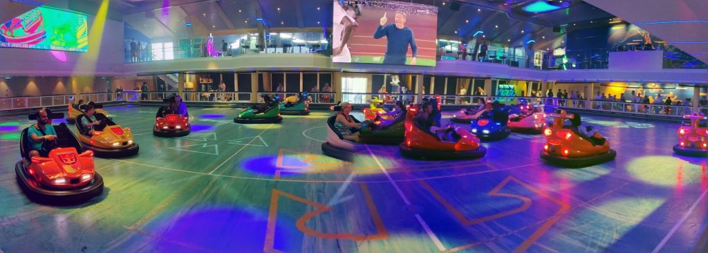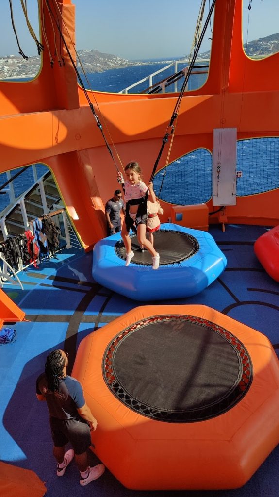 There are a whole host of other activities onboard as well – bumper cars, arcades, kids clubs, sports, flow rider, trampolines deck games, quiz shows, gameshows, films to name a few. We managed to drag her along to the bumper cars and trampolines but to be honest, she was happiest in the swimming pool.