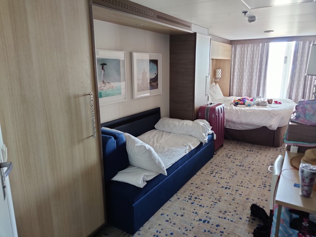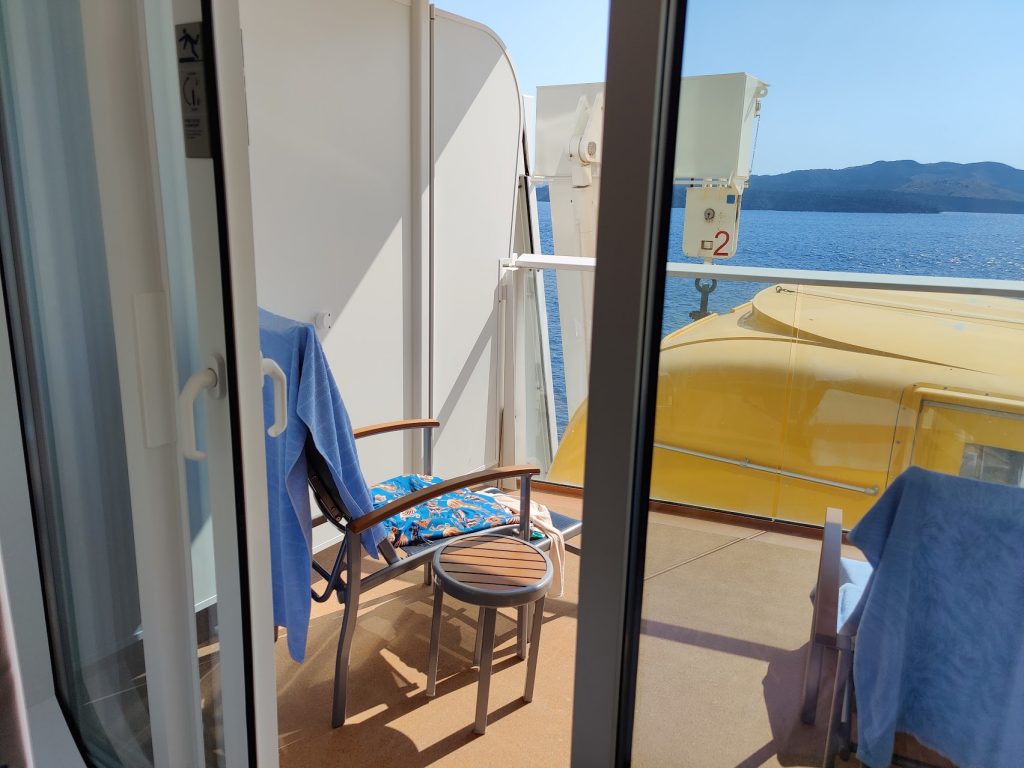 We had booked a restricted view balcony cabin on deck 6. The view from the balcony was partially obstructed by a lifeboat but I would happily book this cabin type again as we don’t spend much time on the balcony but a balcony is still nice to have for checking on the weather / drying swimwear / having somewhere outdoors to sit while others are getting ready.